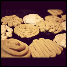 | Chocolate cupcakes with peanut butter & cream cheese icing for my southern gentleman! |