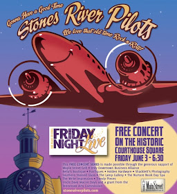 Until then, I think that Ryan and I will be heading to the downtown square tonight for Friday Night Live (free concert-part of a summer series). The band Stones River Pilots will be there and they play a wide variety of music (rock, blues, country) so I'm sure it will be a great time!