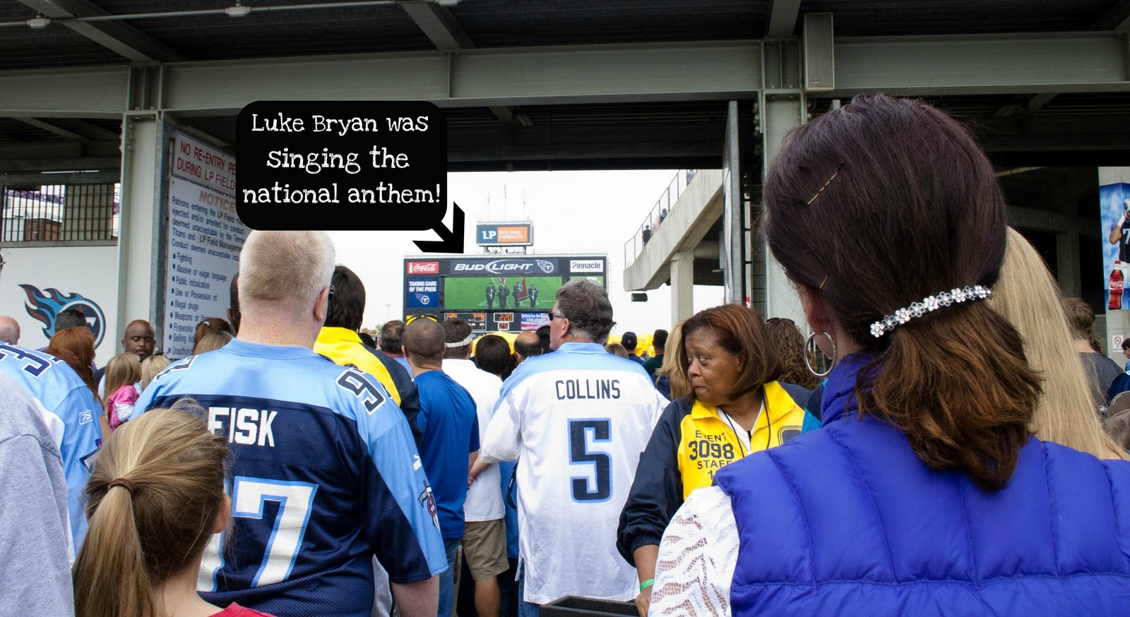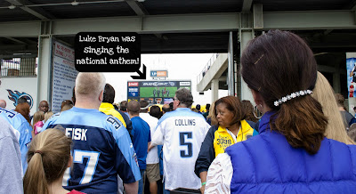 They had boy and girls lines....which I learned after I already stood through one line! Super frustrating, because I missed Luke Bryan singing the national anthem while standing in line. |