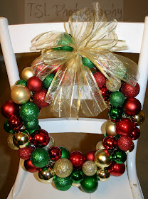 method that I found on Pinterest. I used a coat hanger and strung the ornaments on and then arranged them (they arrange themselves for the most part, but you can help to organize the colors). It took far less time, so I was really happy that I tried the second method!