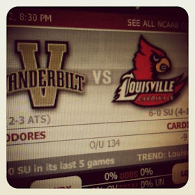 After getting home from downtown we got comfy just in time to watch the Cards play Vandy in men's basketball. It was definitely the best game I've seen in a long time! Ryan and I were both on the edge of our seats the whole time, especially towards the end when it was in OT. We pulled out a win and we couldn't have been happier!
