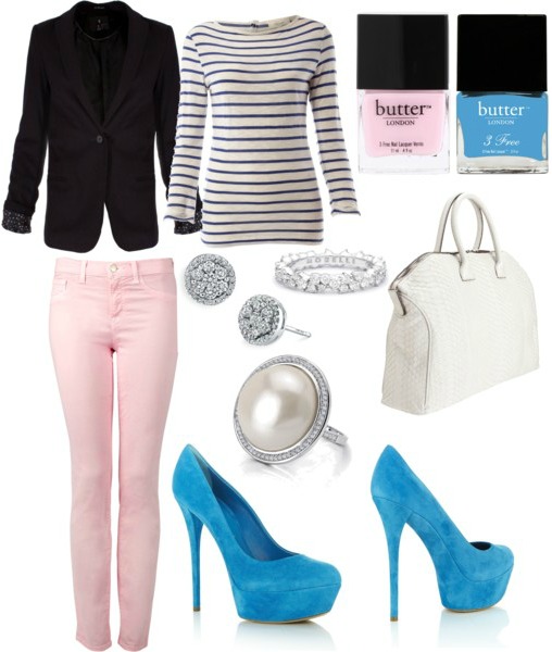 I've had this outfit pinned for a few weeks and it makes me daydream every time I see it! I love the color combo, and it definitely gets me in the mood for spring. Pastels, mixing textures and styles, not having to layer for warmth alone--what's not to love about spring?