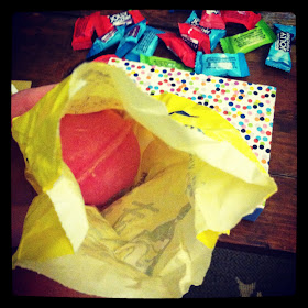 | How cute is the packaging? I love the pink and orange! And those Jolly Ranchers? Delicious :) |