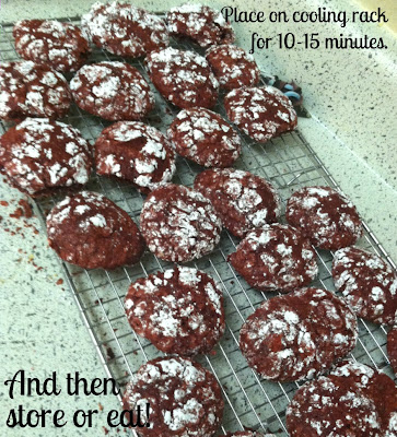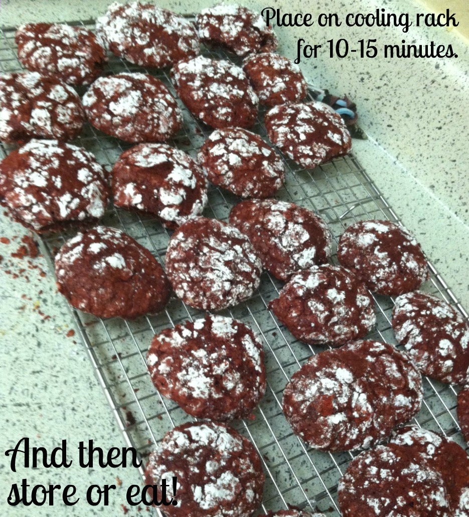Bake cookies for 11 minutes. Then place on cooling rack for 10-15 minutes (this helps them set!). Then eat them all a few and store the rest!