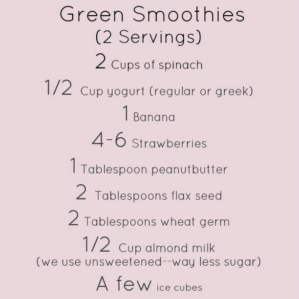 Here's what we put in ours (for 1-2 people (a full glass each)) just blend and drink: