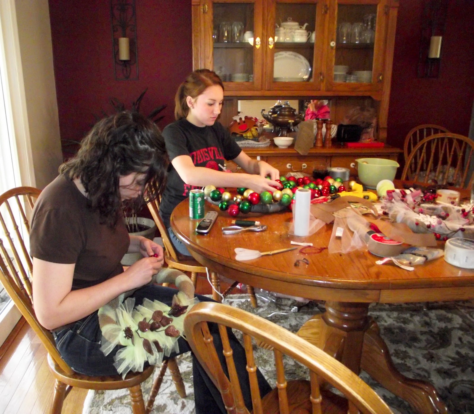 The ladies of the family also spent some time crafting while the boys were away at an auto show. It was so fun doing this with the girls...plus I have TWO pretty new wreaths!